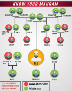 Seorang Pria yang telah aqil baligh Berjabat tangan dengan wanita jika termasuk mahrom maka tidak apa-apa dan tidak masalah, istri kakek termasuk mahrom, istri ayahmu (baik kandung atau tiri) dan istri kakek dan istri kakeknya kakek maka semuanya itu adalah mahrom, begitu juga istri anak-anakmu, istri cucu-cucumu dan cucu dari anak perempuanmu dan dari anak laki-lakimu, semuanya adalah mahrom.