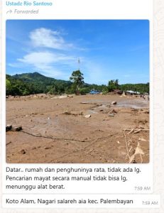 dengan kemudahan teknologi saat ini, kita bisa segera mendapatkan update data, bisa melihat dan merasakan penderitaan mereka, berjuang untuk selamat dari hantaman banjir namun ada pula yang tak selamat karna tenggelam terbawa arus yang kuat, tertimpa kayu gelondongan, material, dan ada pula yang tertimbun longsong, ada seorang ayah mengais ngais tanah longsor dengan tangannya berharap bisa menemukan anak perempuan tertimbun, adapula ditemukan mayat seorang ibu memeluk erat anaknya yang juga telah wafat, seorang anak menangis mengabarkan didepan matanya ibunya terseret air untuk bisa bersekolah, berusaha bertahan hidup selama beberapa hari tidak makan, ada yang tetap bertahan di rumah masing masing dengan persediaan apa adanya padahal rumah mereka tak jauh dari posko, demi menjaga kehormatan diri.